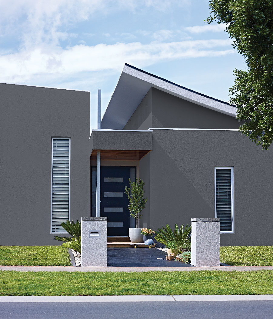 You can order up to 20 colour swatchesTop Shot is a sophisticated mid-dark tone charcoal with a blueish undertone that gives it a cool and minimalist edge. A popular choice for exterior walls, it pairs well with natural materials like timber and stone, and provides a dramatic backdrop to natural greenery. Keep the colour scheme simple with cool white trims such as British Paints Star White or Diamond White, and add in a pale silver grey such as Unlimited Space. You can then go all out on a feature purple for the front door (try Wine Tasting) to add an instant welcome. Inside, Top Shot will work beautifully on kitchen cabinetry and makes a big impact as a feature wall in a living space or bedroom. Use it to show off artworks and colourful accessories to lighten the mood.