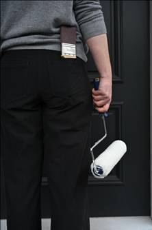 Give your paint a good stir before applying. Start by using a paint brush and cutting in around the edges and panels, then use a roller for the larger flat areas.
